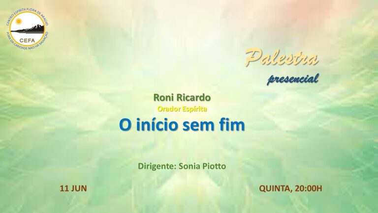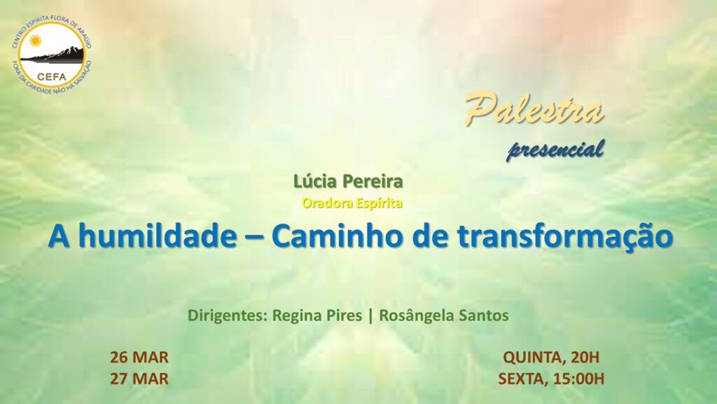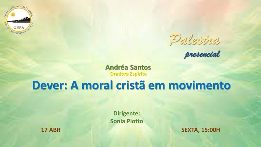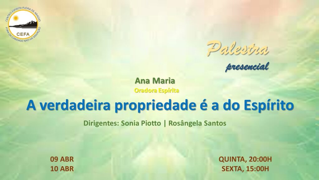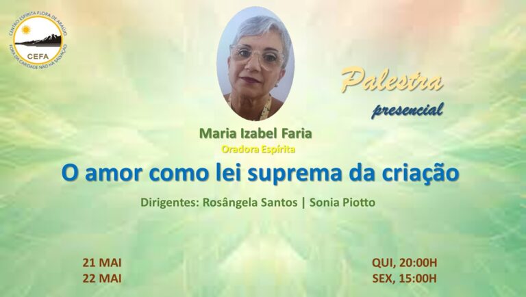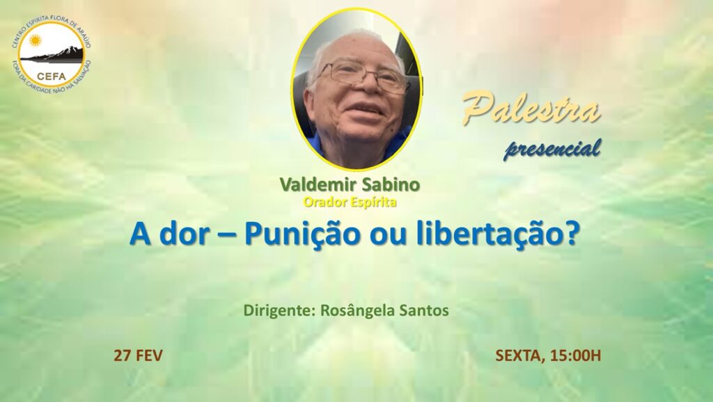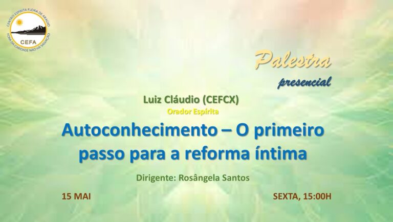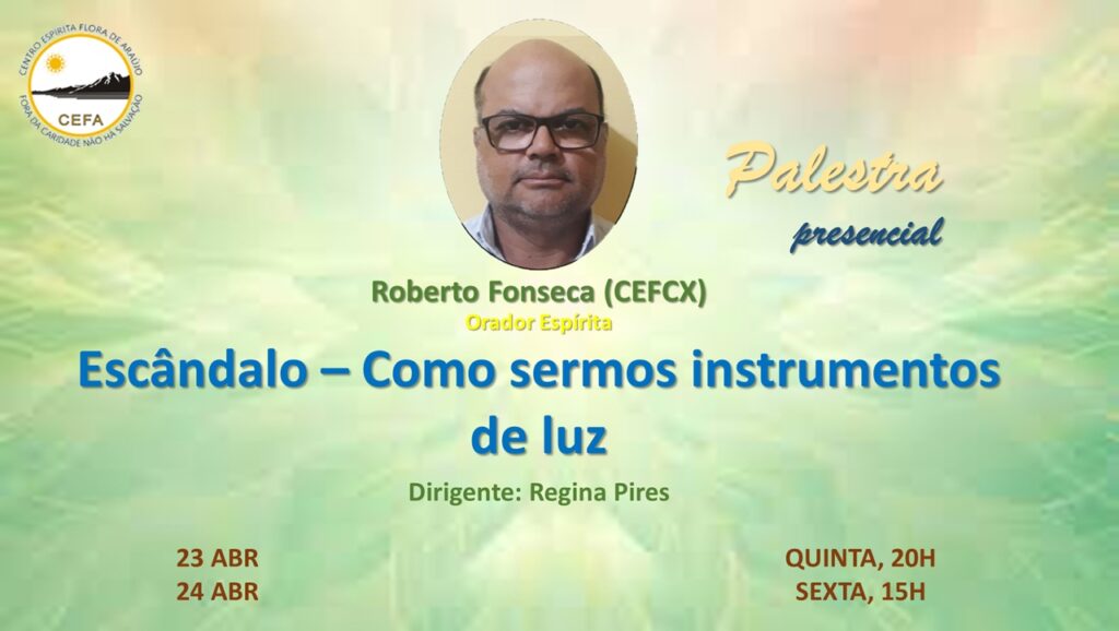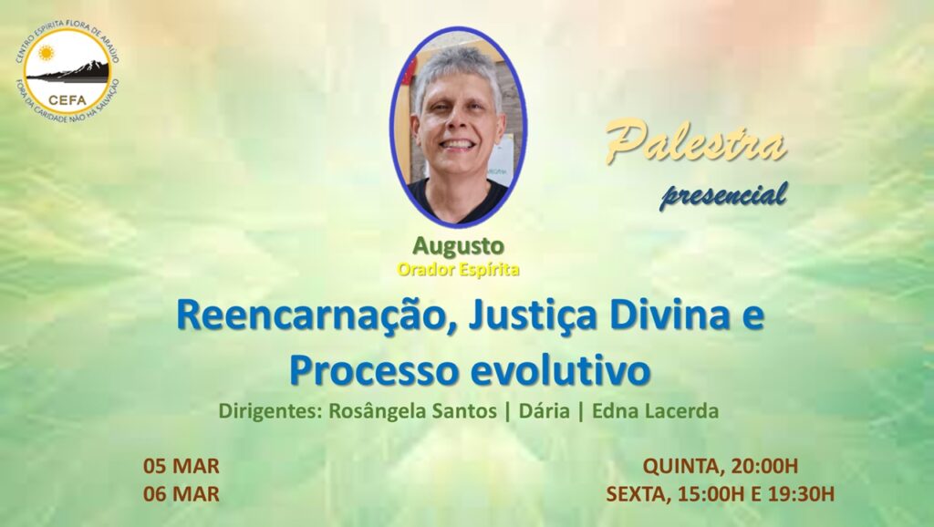 (Clique nas imagens das palestras já apresentadas, para assistir as mesmas em nosso Canal no YouTube – CEFA Centro Espírita Flora de Araújo)