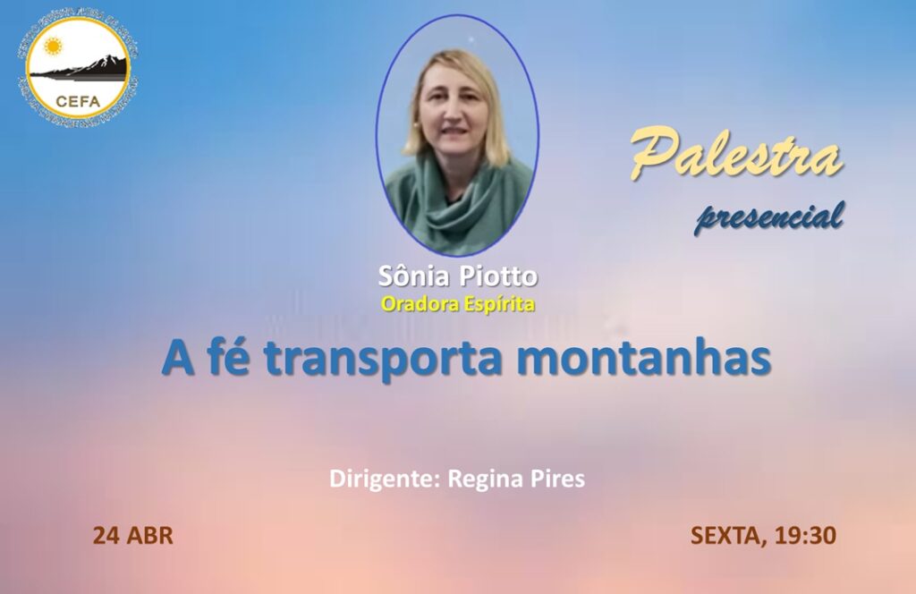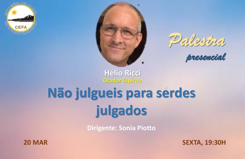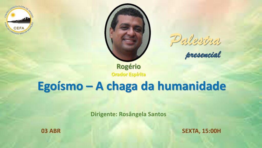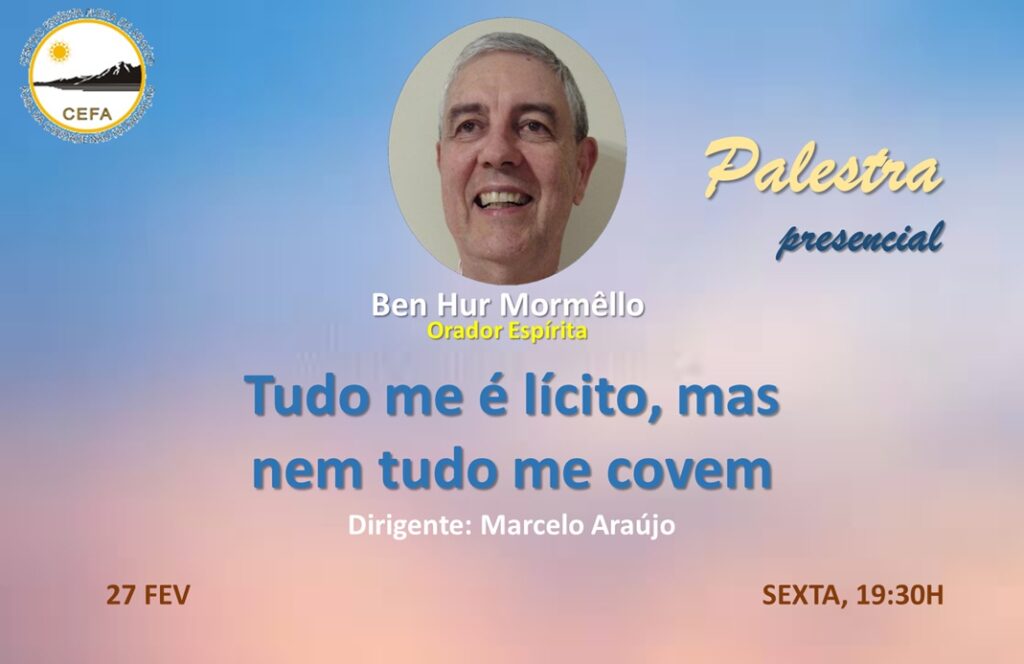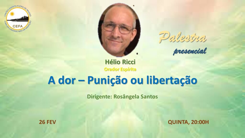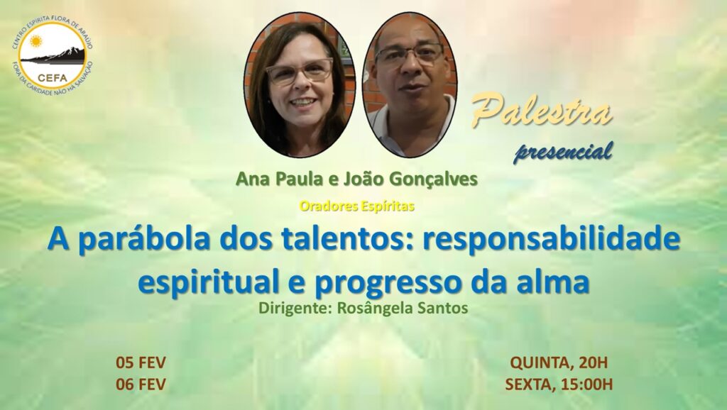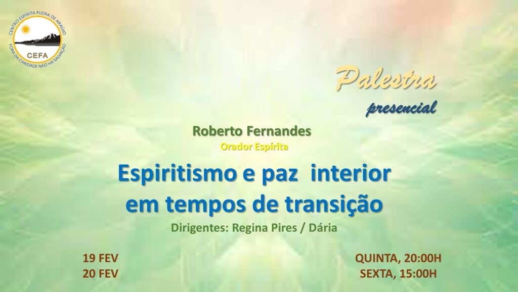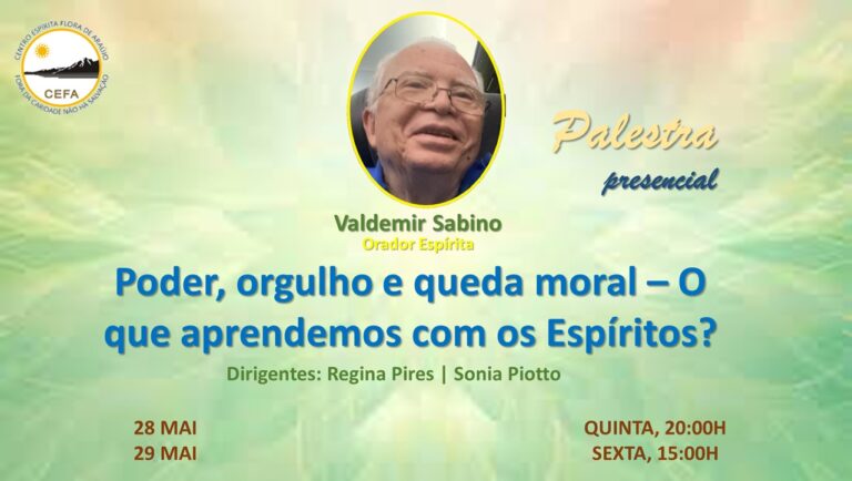 (Clique nas imagens das palestras já apresentadas, para assistir as mesmas em nosso Canal no YouTube – CEFA Centro Espírita Flora de Araújo)